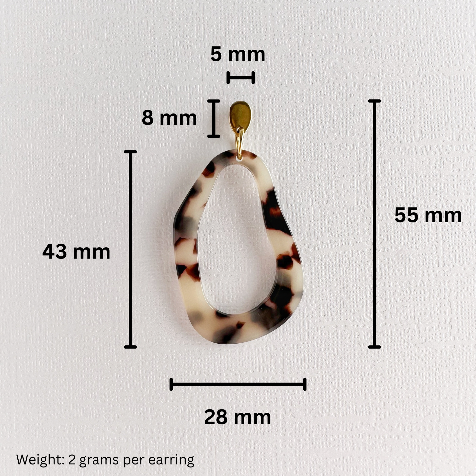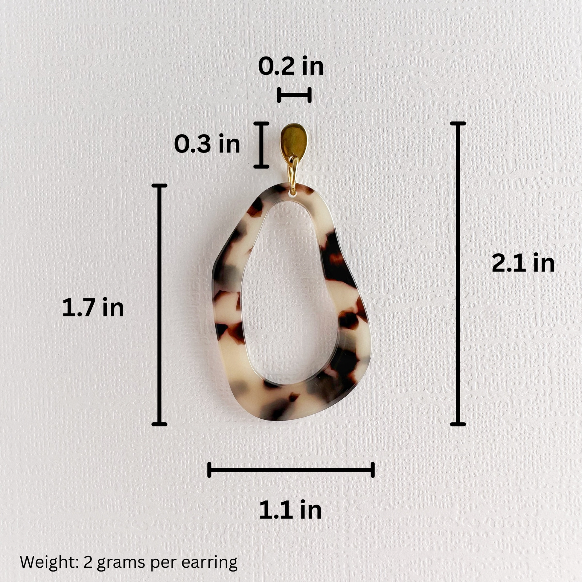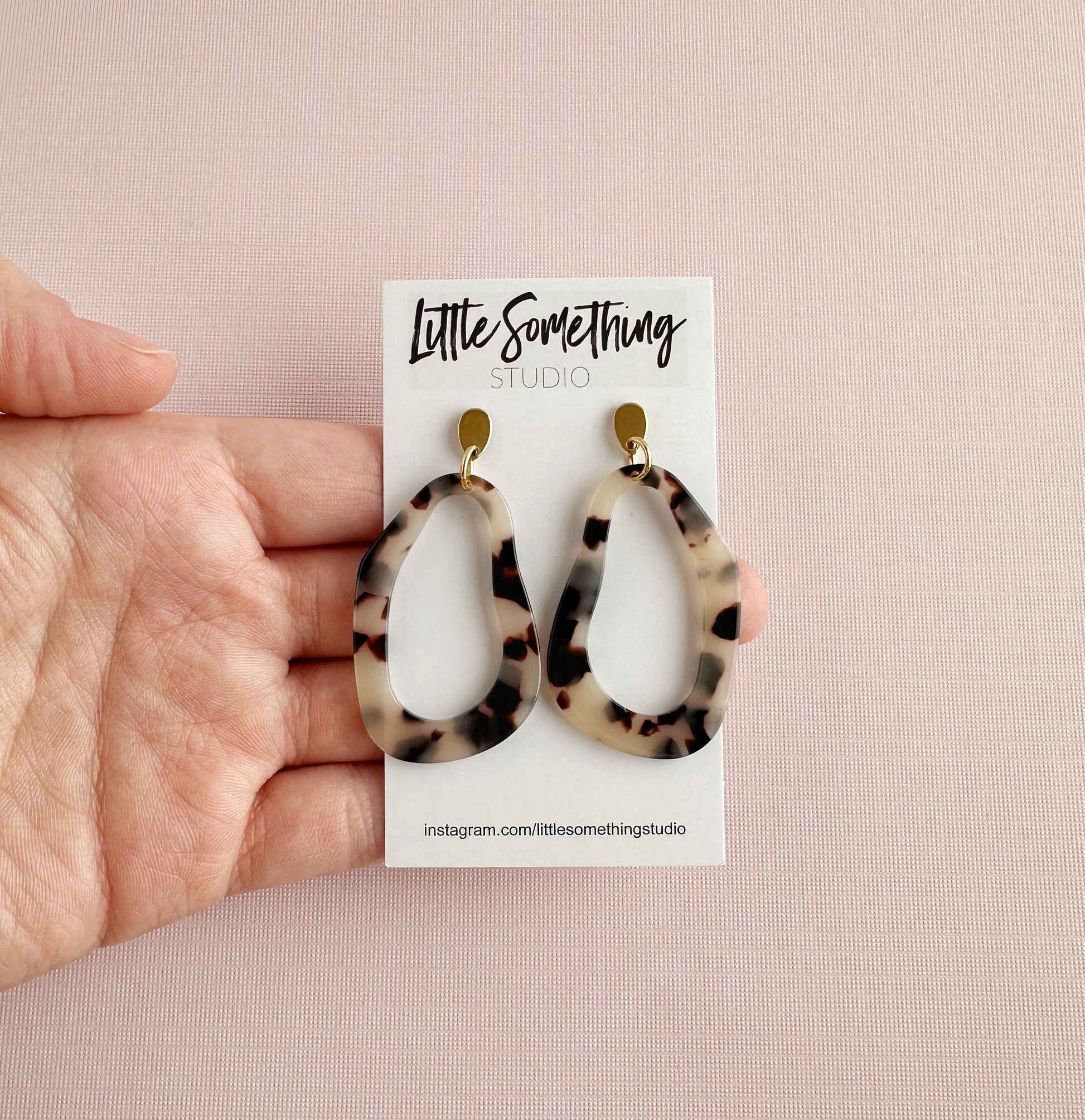 These abstract tortoise shell statement earrings add a chic and modern touch to your look! Designed for effortless style, these lightweight statement earrings combine a sleek minimalist shape with a timeless tortoiseshell pattern. Perfect for everyday wear, special occasions, or as a unique gift for her.