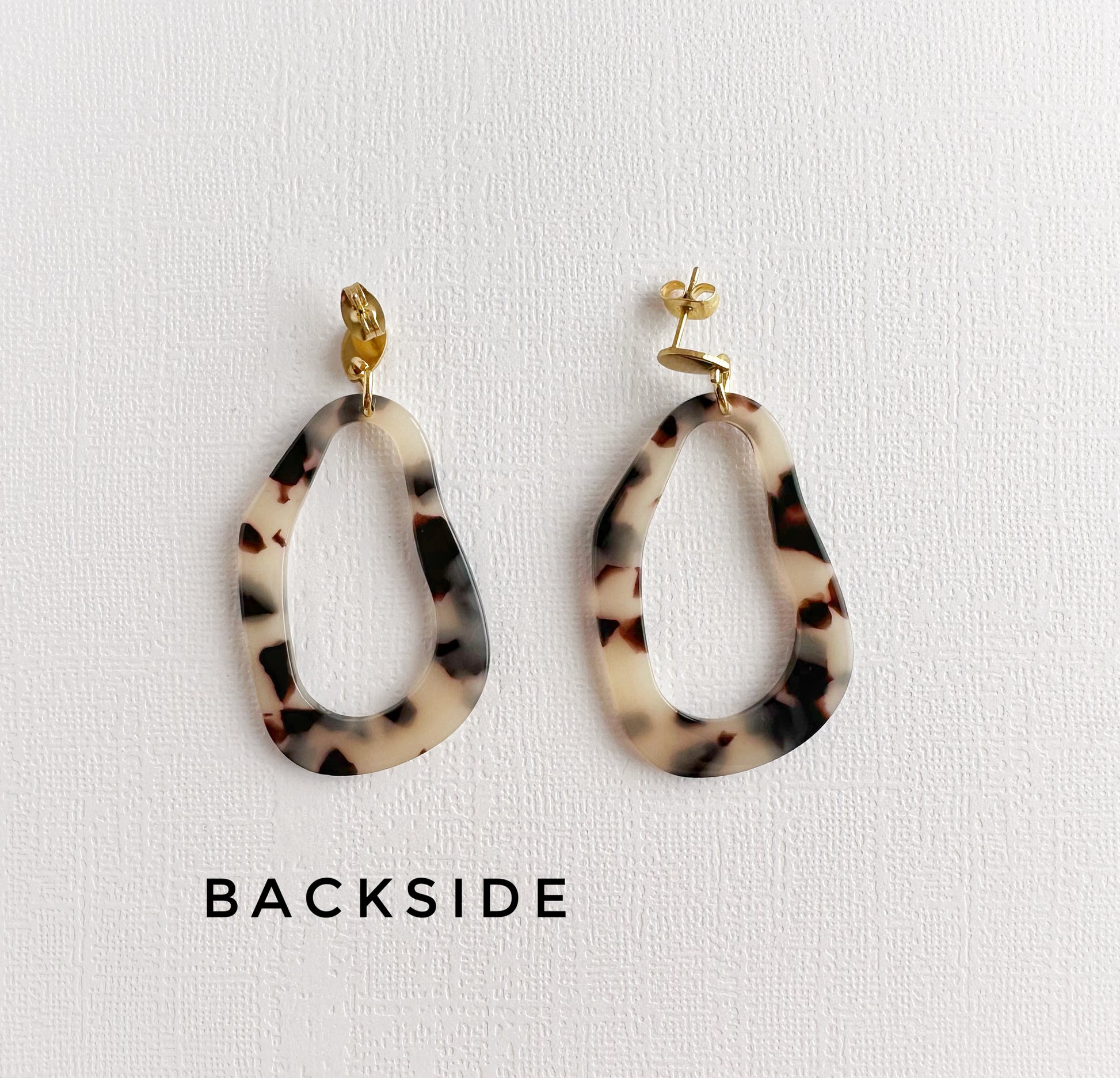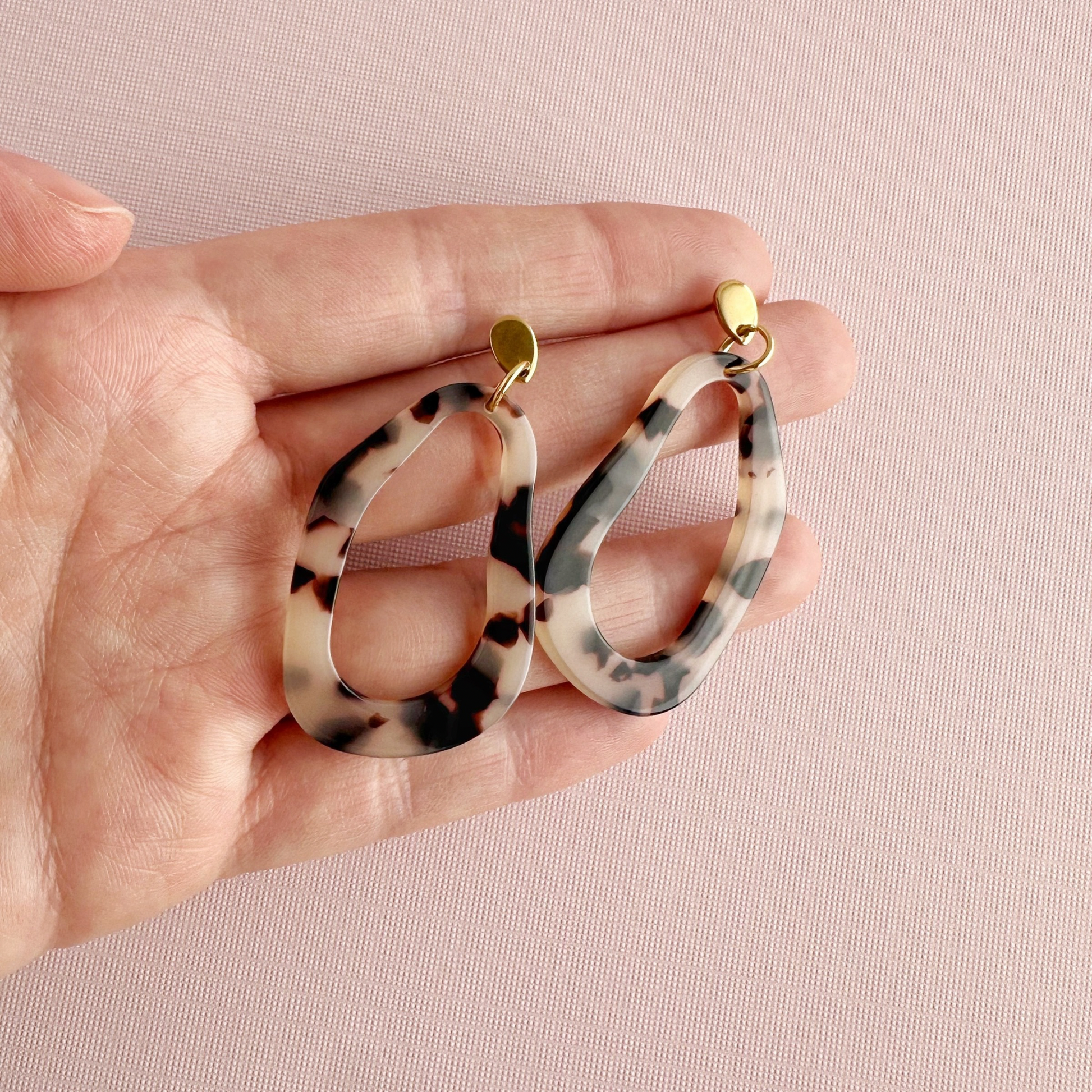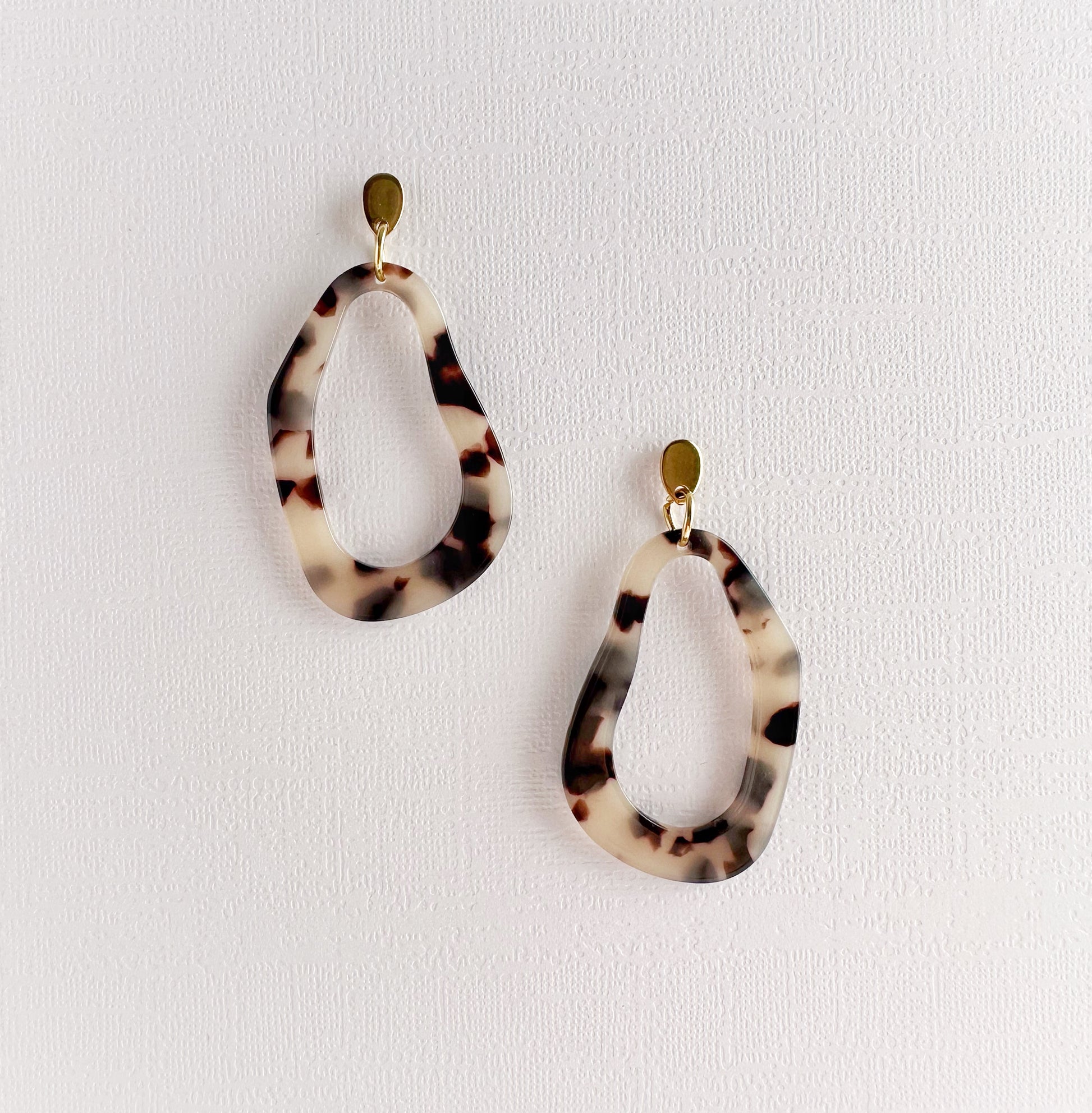 These abstract tortoise shell statement earrings add a chic and modern touch to your look! Designed for effortless style, these lightweight statement earrings combine a sleek minimalist shape with a timeless tortoiseshell pattern. Perfect for everyday wear, special occasions, or as a unique gift for her.