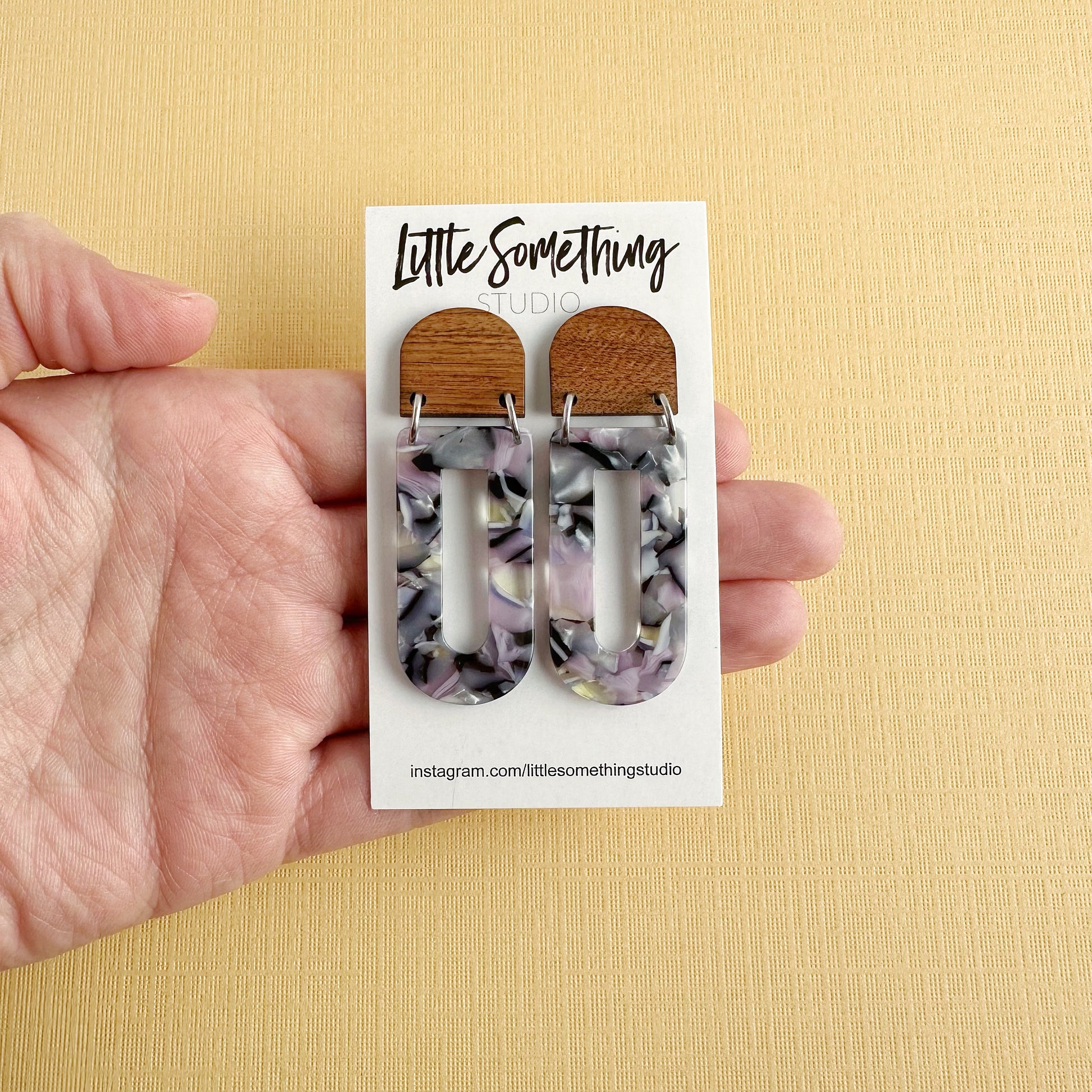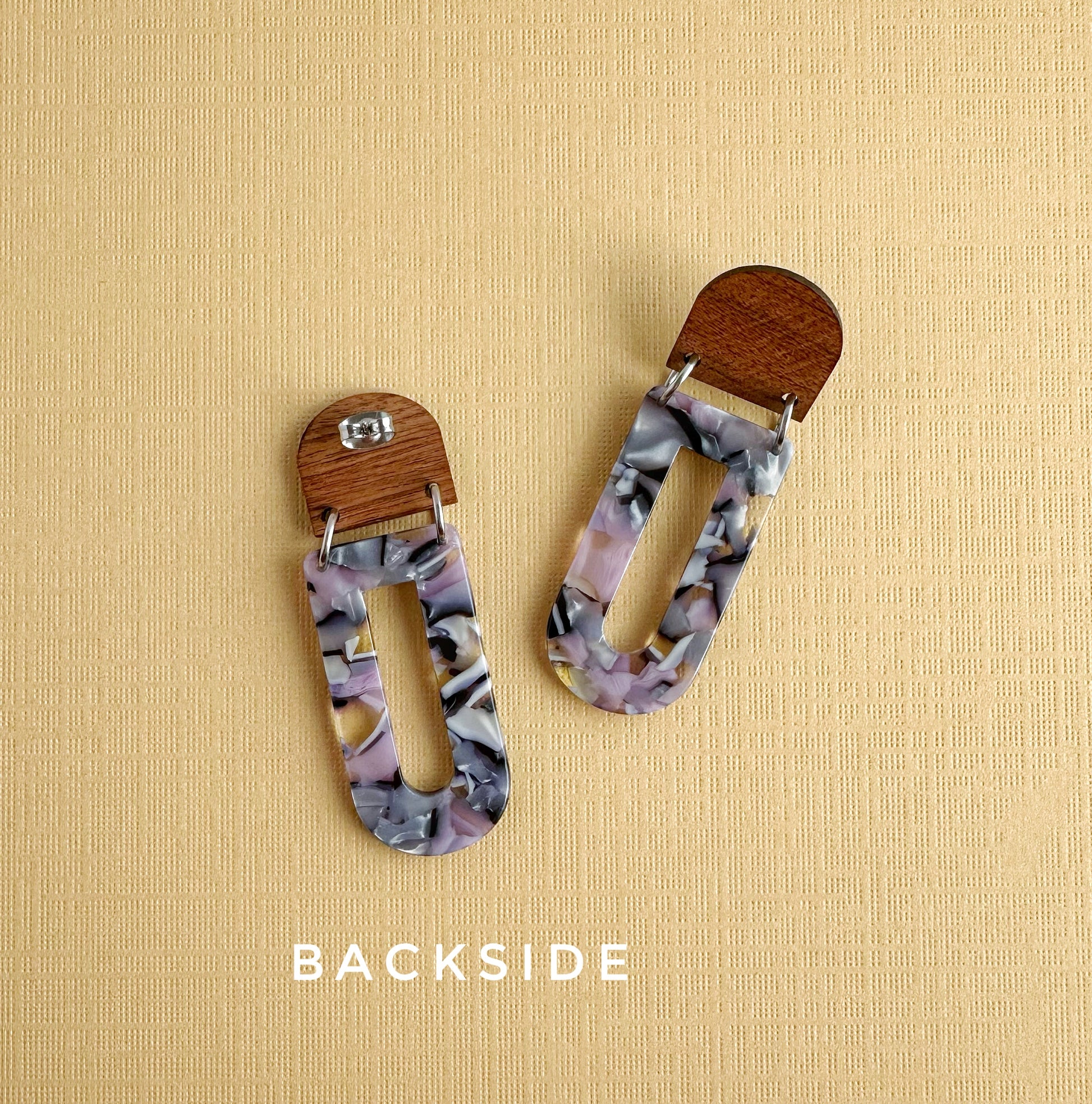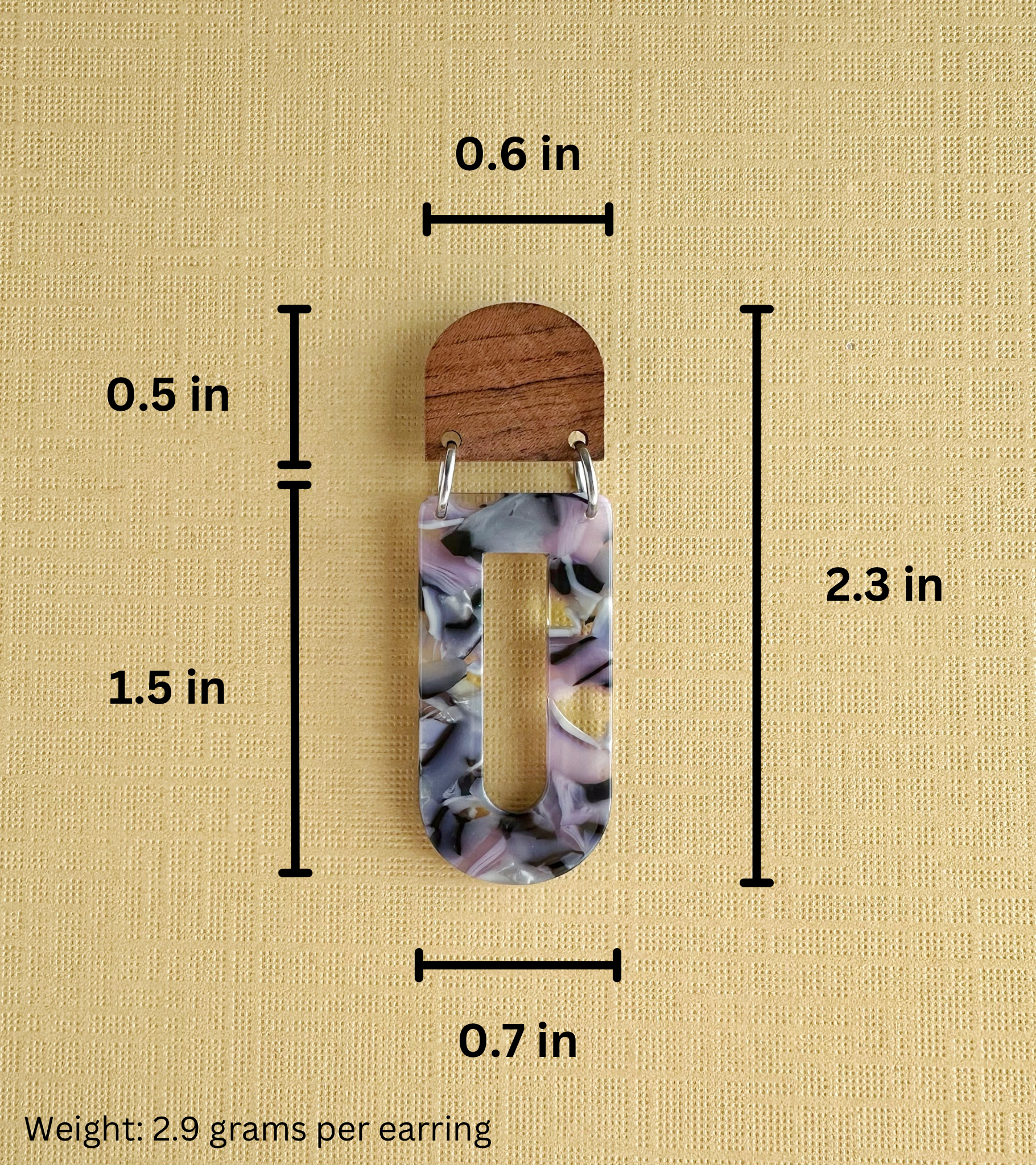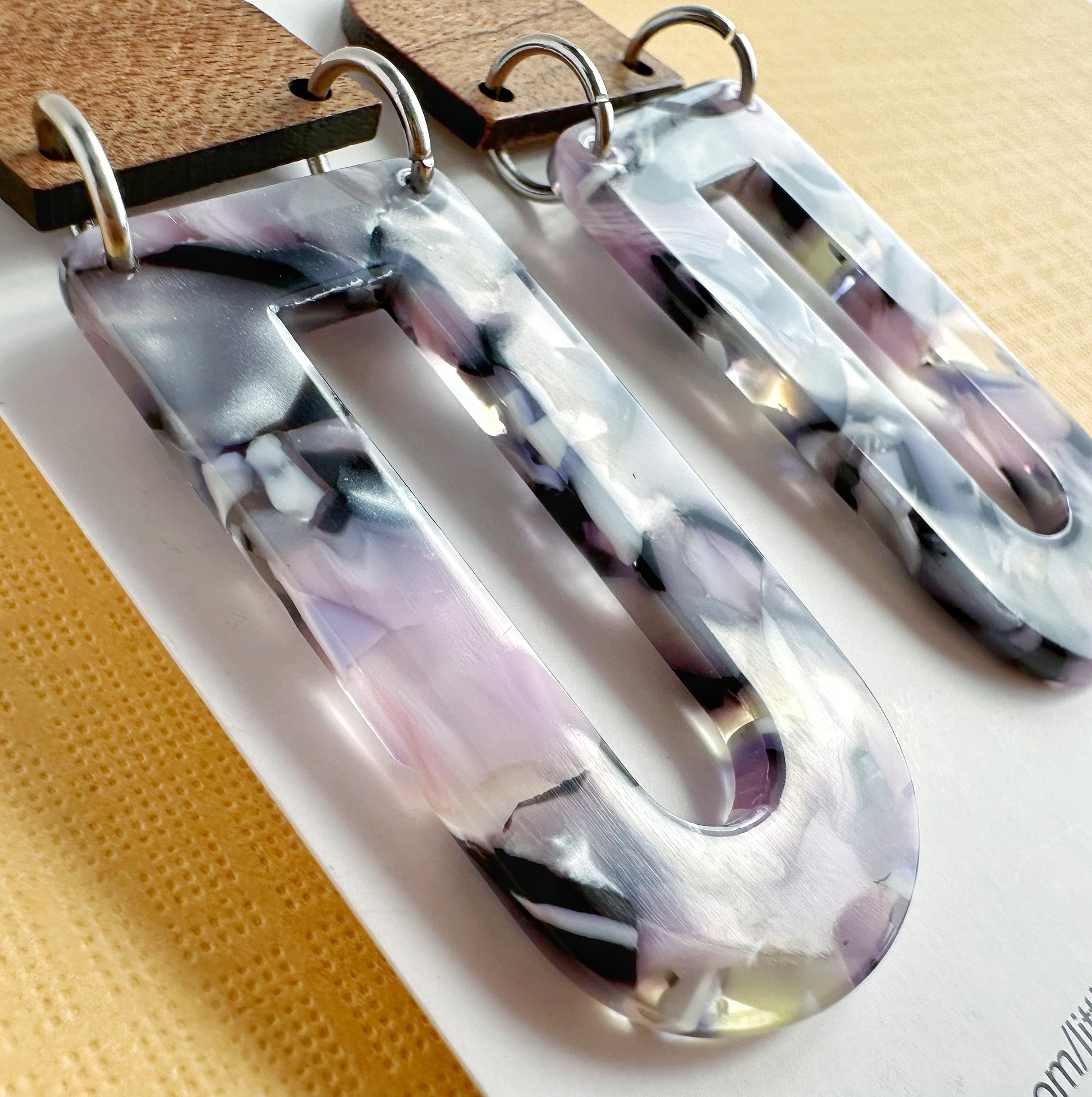 Add a touch of modern elegance with these geometric lightweight dangle earrings, featuring a stunning blend of natural wood and pastel marbled acetate. Their contemporary yet boho-inspired design makes them a versatile statement piece, perfect for casual wear or dressing up. With their lightweight feel, these earrings offer bold style without discomfort—making them an ideal unique gift for her.